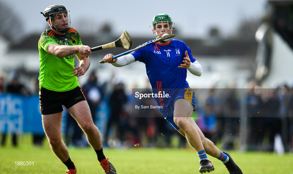 8 February 2020; Gary Cooney of Mary Immaculate College Limerick in action against Jason Cleere of IT Carlow during the Fitzgibbon Cup Semi-Final match between Mary Immaculate College Limerick and IT Carlow at Dublin City University Sportsgrounds. Photo by Sam Barnes/Sportsfile