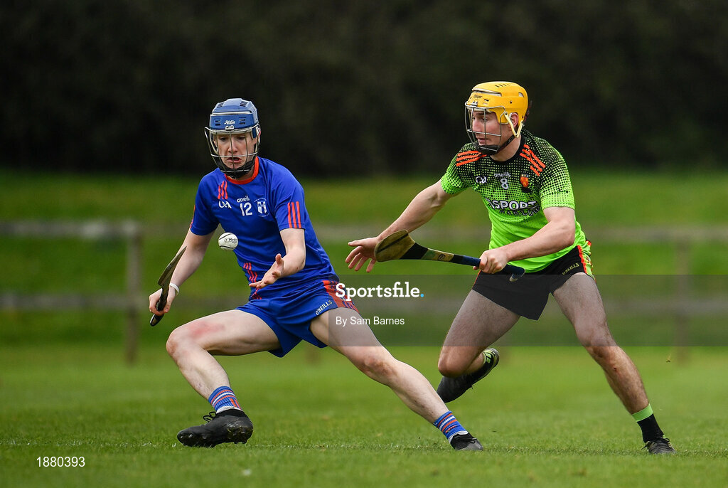 8 February 2020; Andrew Ormond of Mary Immaculate College Limerick in action against Richie Leahy of IT Carlow during the Fitzgibbon Cup Semi-Final match between Mary Immaculate College Limerick and IT Carlow at Dublin City University Sportsgrounds. Photo by Sam Barnes/Sportsfile