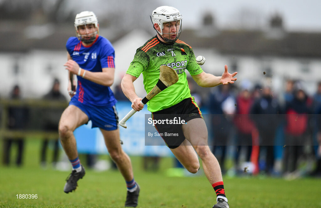 8 February 2020; Cathal Dunbar of IT Carlow in action against Craig Moran of Mary Immaculate College Limerick during the Fitzgibbon Cup Semi-Final match between Mary Immaculate College Limerick and IT Carlow at Dublin City University Sportsgrounds. Photo by Sam Barnes/Sportsfile