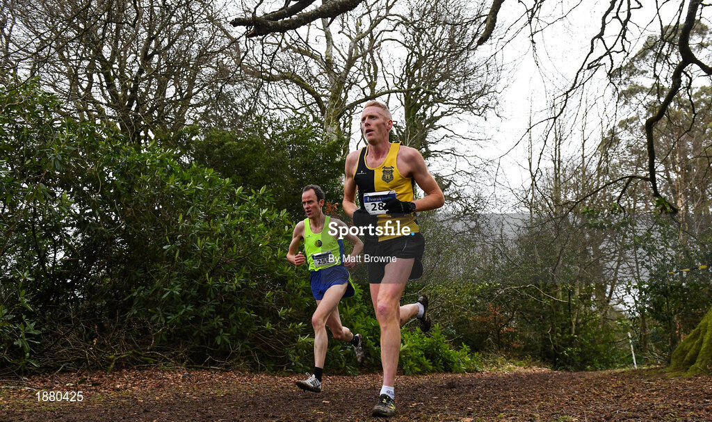 8 February 2020; Brian Maher of Kilkenny City Harriers, right, on his way to winning the Masters Men Cross Country ahead of eventual second place finisher Peter Arthur of Liffey Valley AC, Dublin, during the Irish Life Health National Intermediate, Master, Juvenile B & Relays Cross Country at Avondale in Rathdrum, Co Wicklow. Photo by Matt Browne/Sportsfile