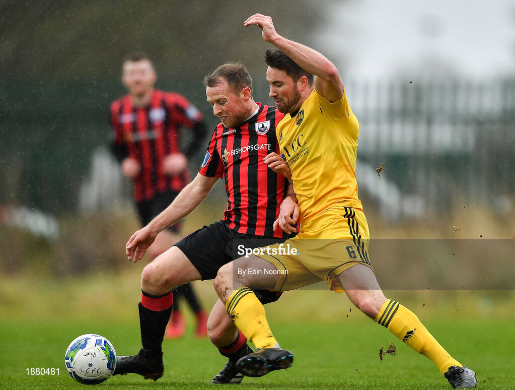 8 February 2020; Dean Zambra of Longford Town in action against Gearóid Morrissey during the pre-season friendly match between Cork City and Longford Town at Cork City training ground in Bishopstown, Cork. Photo by Eóin Noonan/Sportsfile