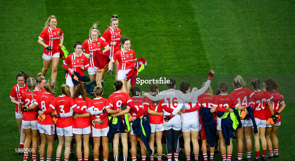 8 February 2020; Cork players prior to the Lidl Ladies National Football League Division 1 Round 3 match between Dublin and Cork at Croke Park in Dublin. Photo by Stephen McCarthy/Sportsfile