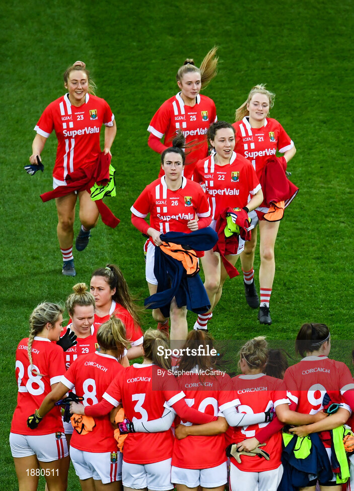 8 February 2020; Cork players prior to the Lidl Ladies National Football League Division 1 Round 3 match between Dublin and Cork at Croke Park in Dublin. Photo by Stephen McCarthy/Sportsfile