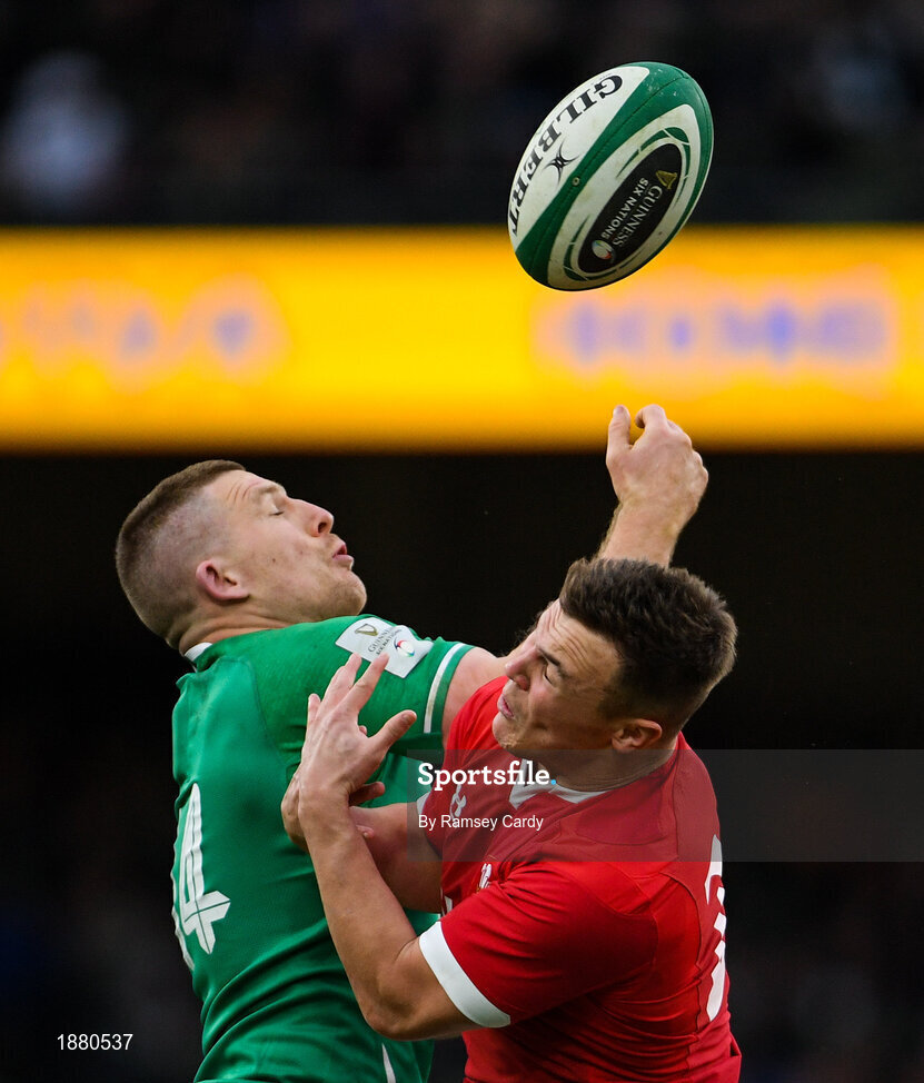 8 February 2020; Andrew Conway of Ireland in action against Jarrod Evans of Wales during the Guinness Six Nations Rugby Championship match between Ireland and Wales at the Aviva Stadium in Dublin. Photo by Ramsey Cardy/Sportsfile