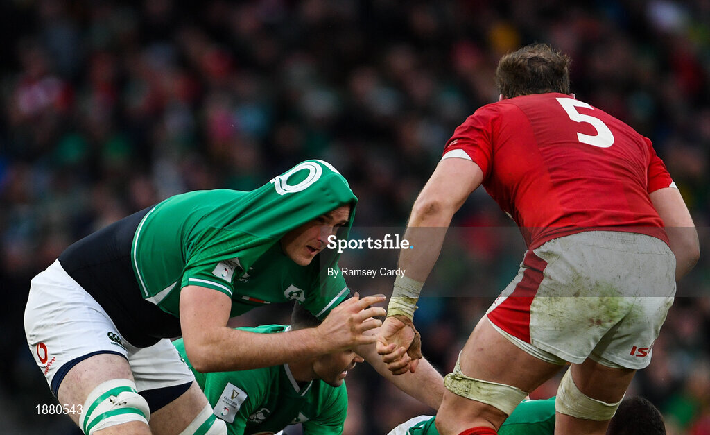 8 February 2020; Devin Toner of Ireland after having his shirt pulled over his head by Alun Wyn Jones of Wales during the Guinness Six Nations Rugby Championship match between Ireland and Wales at the Aviva Stadium in Dublin. Photo by Ramsey Cardy/Sportsfile