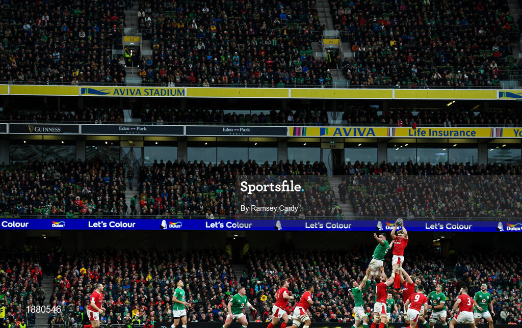 8 February 2020; Aaron Wainwright of Wales and James Ryan of Ireland during the Guinness Six Nations Rugby Championship match between Ireland and Wales at the Aviva Stadium in Dublin. Photo by Ramsey Cardy/Sportsfile