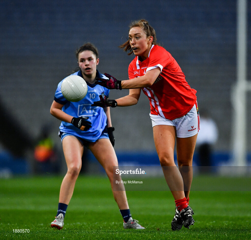 8 February 2020; Sarah Leahy of Cork in action against Kate Sullivan of Dublin during the Lidl Ladies National Football League Division 1 Round 3 match between Dublin and Cork at Croke Park in Dublin. Photo by Ray McManus/Sportsfile