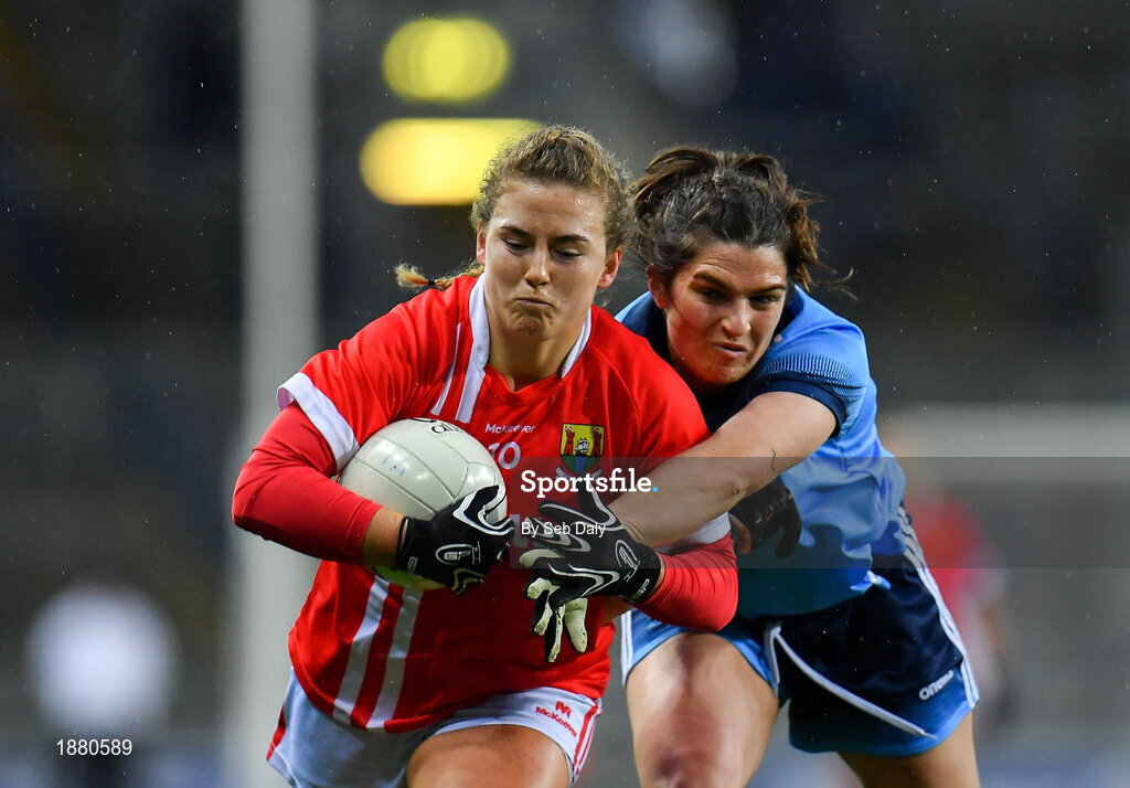 8 February 2020; Libby Coppinger of Cork in action against Niamh Collins of Dublin during the Lidl Ladies National Football League Division 1 Round 3 match between Dublin and Cork at Croke Park in Dublin. Photo by Seb Daly/Sportsfile