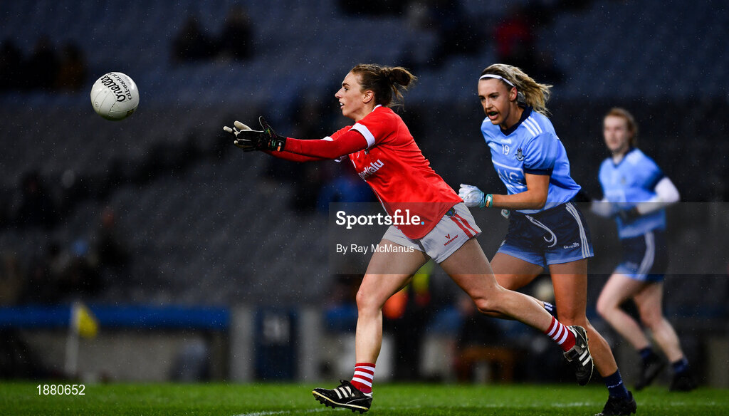 8 February 2020; Aisling Hutchings of Cork in action against Niamh Sweeney of Dublin during the Lidl Ladies National Football League Division 1 Round 3 match between Dublin and Cork at Croke Park in Dublin. Photo by Ray McManus/Sportsfile