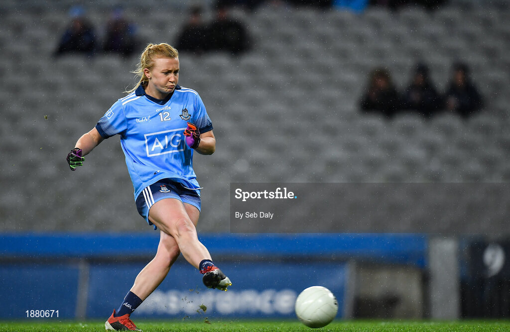 8 February 2020; Carla Rowe of Dublin shoots to score her side's first goal from a penalty during the Lidl Ladies National Football League Division 1 Round 3 match between Dublin and Cork at Croke Park in Dublin. Photo by Seb Daly/Sportsfile