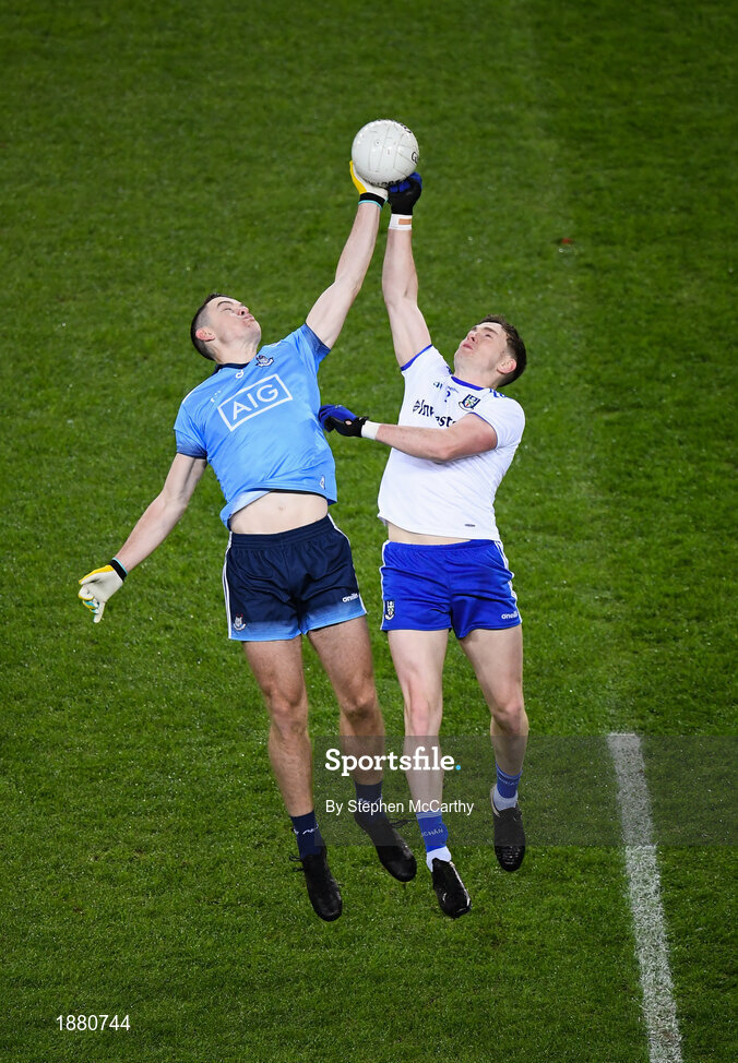 8 February 2020; Brian Fenton of Dublin in action against Niall Kearns of Monaghan during the Allianz Football League Division 1 Round 3 match between Dublin and Monaghan at Croke Park in Dublin. Photo by Stephen McCarthy/Sportsfile