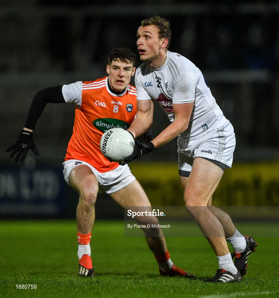 8 February 2020; Tommy Moolick of Kildare in action against Niall Grimley of Armagh during the Allianz Football League Division 2 Round 3 match between Armagh and Kildare at Athletic Grounds in Armagh. Photo by Piaras Ó Mídheach/Sportsfile