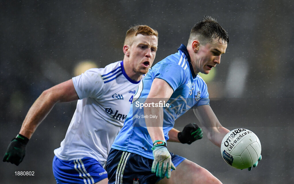 8 February 2020; Dara Mullin of Dublin in action against Ryan Wylie of Monaghan during the Allianz Football League Division 1 Round 3 match between Dublin and Monaghan at Croke Park in Dublin. Photo by Seb Daly/Sportsfile