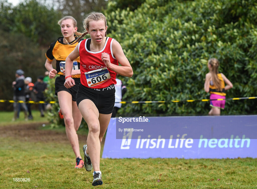 8 February 2020; Orna Moynihan of St. Cronans AC, Clare, right, who won gold in the girls under-15 Cross Country from second place Lily Sheehy from Ashford, Co Wicklow during the Irish Life Health National Intermediate, Master, Juvenile B & Relays Cross Country at Avondale in Rathdrum, Co Wicklow. Photo by Matt Browne/Sportsfile