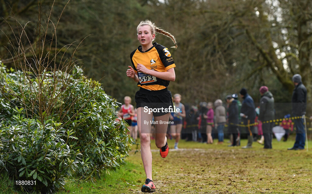 8 February 2020; Lily Sheehy from Ashford, Wicklow, who came second in the girls under-15 Cross Country during the Irish Life Health National Intermediate, Master, Juvenile B & Relays Cross Country at Avondale in Rathdrum, Co Wicklow. Photo by Matt Browne/Sportsfile