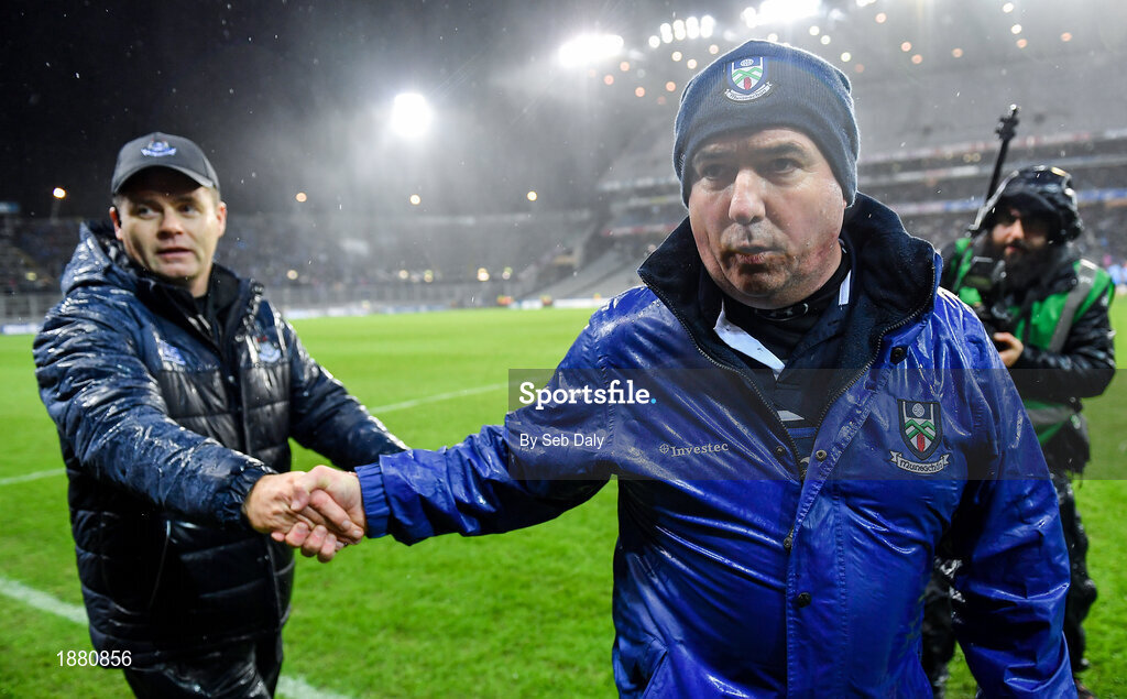 8 February 2020; Monaghan manager Séamus McEnaney, right, and Dublin manager Dessie Farrell shake hands following the Allianz Football League Division 1 Round 3 match between Dublin and Monaghan at Croke Park in Dublin. Photo by Seb Daly/Sportsfile