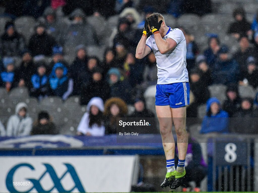 8 February 2020; Philip Donnelly of Monaghan reacts after kicking wide during the Allianz Football League Division 1 Round 3 match between Dublin and Monaghan at Croke Park in Dublin. Photo by Seb Daly/Sportsfile