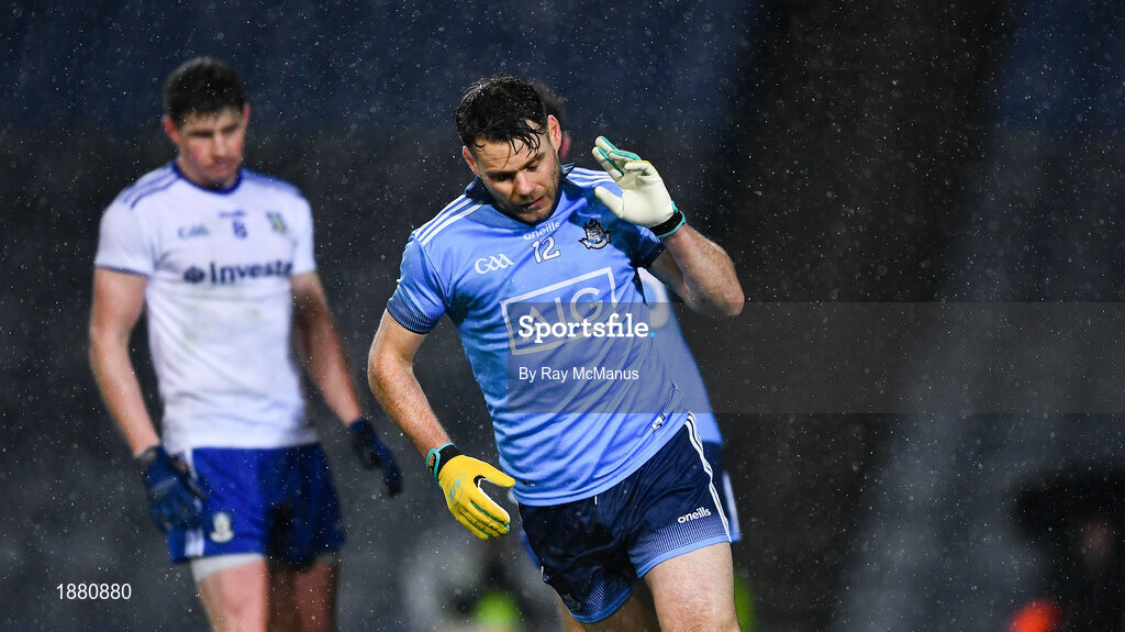 8 February 2020; Kevin McManamon celebrates after scoring a goal, in the 70th minute, during the Allianz Football League Division 1 Round 3 match between Dublin and Monaghan at Croke Park in Dublin. Photo by Ray McManus/Sportsfile