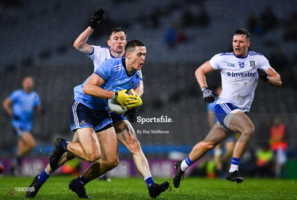 8 February 2020; Brian Fenton of Dublin in action against Karl O'Connell of Monaghan, with team-mate Dessie Ward in support, during the Allianz Football League Division 1 Round 3 match between Dublin and Monaghan at Croke Park in Dublin. Photo by Ray McManus/Sportsfile