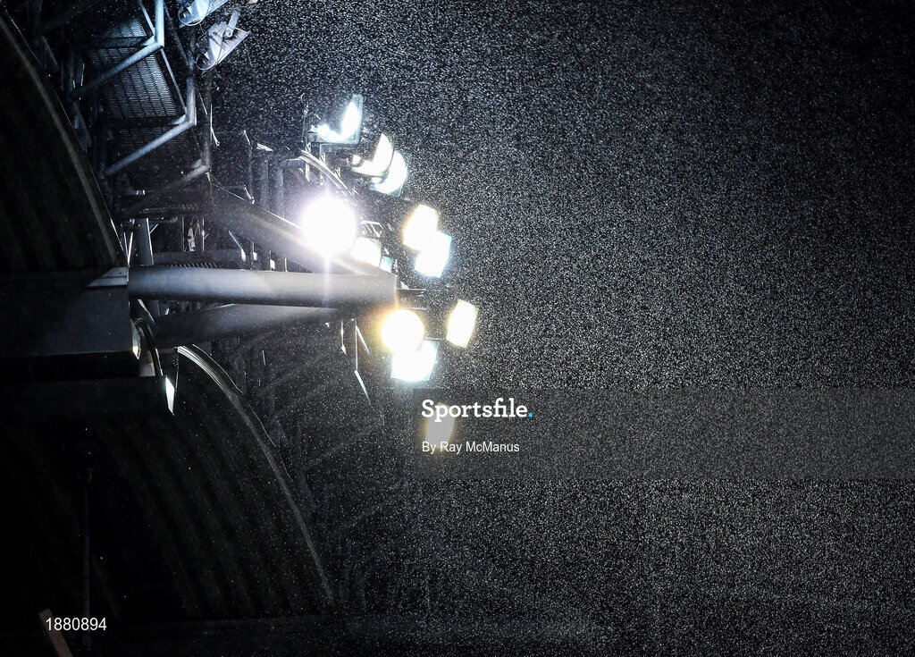 8 February 2020; Croke Park floodlights highlight the pouring rain during the Allianz Football League Division 1 Round 3 match between Dublin and Monaghan at Croke Park in Dublin. Photo by Ray McManus/Sportsfile