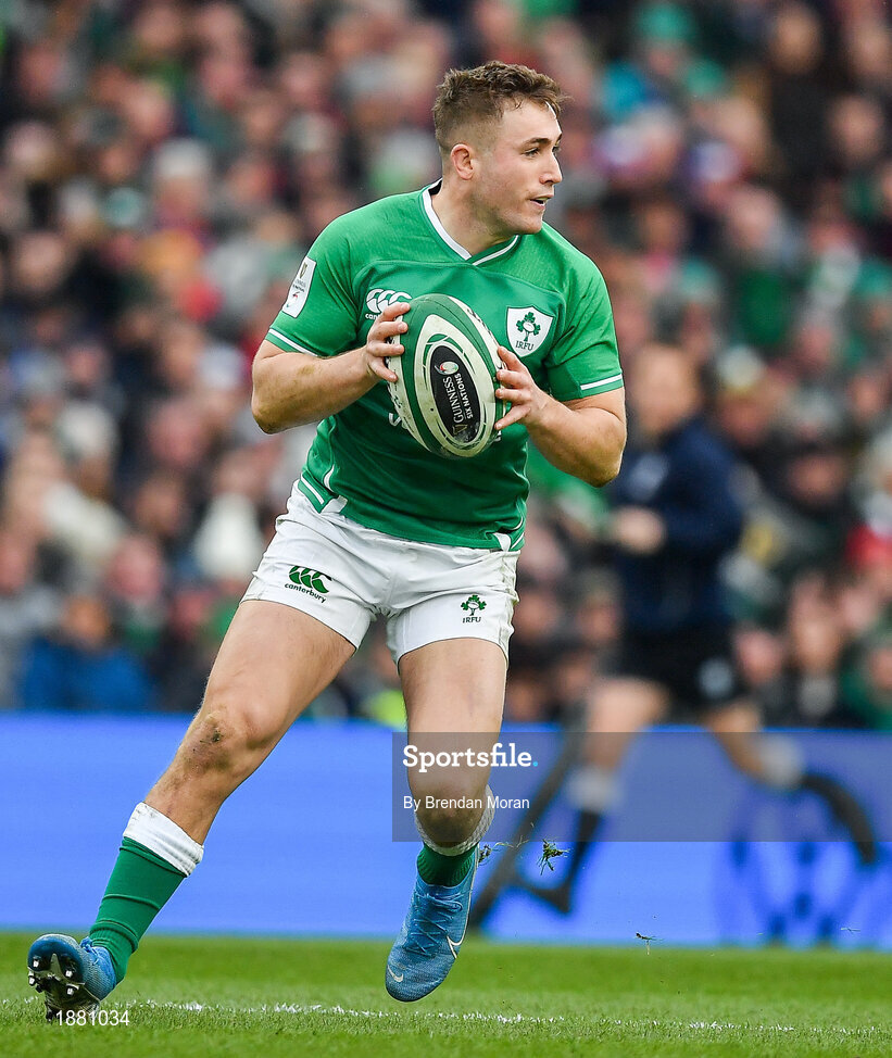 8 February 2020; Jordan Larmour of Ireland during the Guinness Six Nations Rugby Championship match between Ireland and Wales at Aviva Stadium in Dublin. Photo by Brendan Moran/Sportsfile