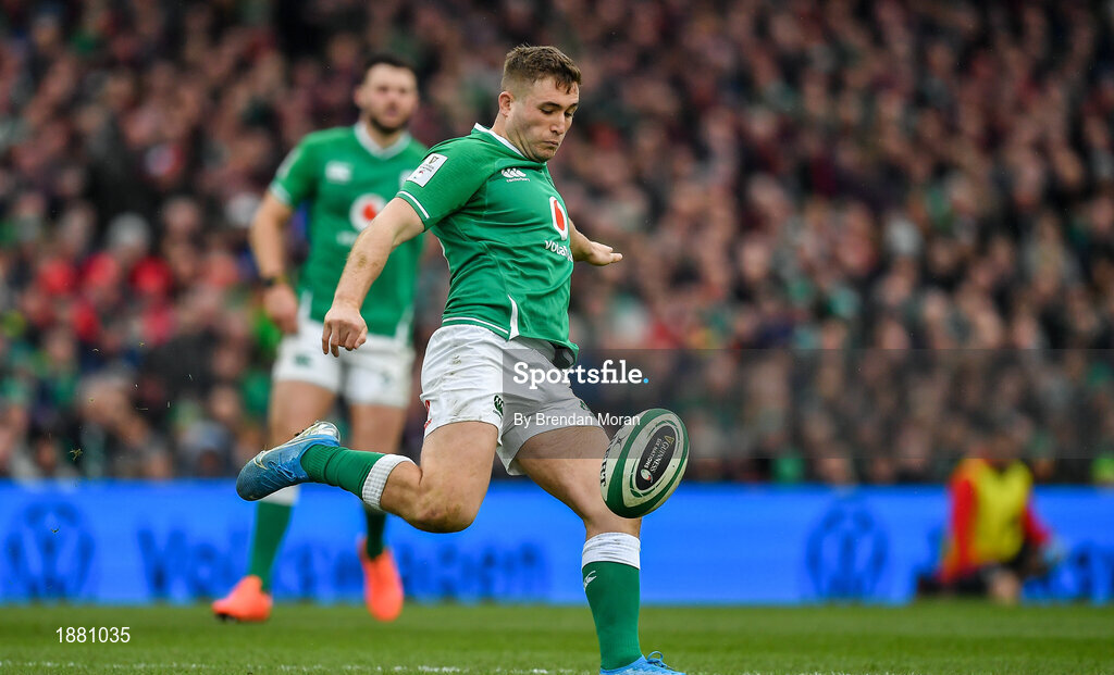 8 February 2020; Jordan Larmour of Ireland during the Guinness Six Nations Rugby Championship match between Ireland and Wales at Aviva Stadium in Dublin. Photo by Brendan Moran/Sportsfile