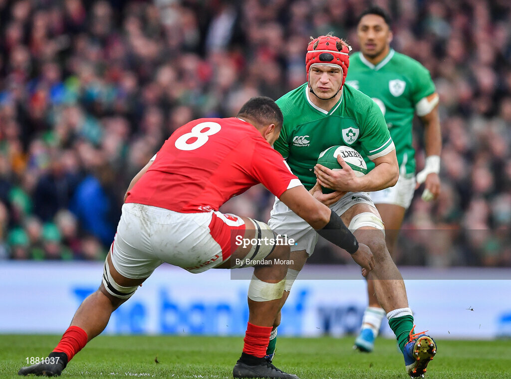 8 February 2020; Josh van der Flier of Ireland in action against Taulupe Faletau of Wales during the Guinness Six Nations Rugby Championship match between Ireland and Wales at Aviva Stadium in Dublin. Photo by Brendan Moran/Sportsfile