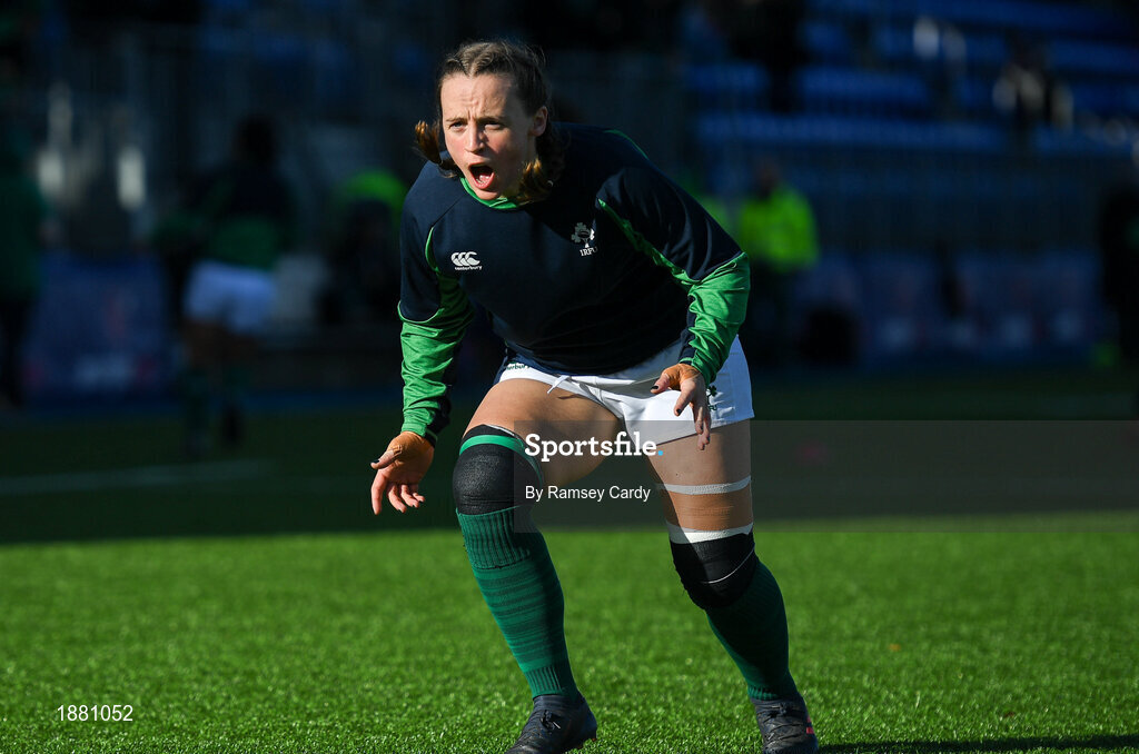 9 February 2020; Michelle Claffey of Ireland warms-up prior to the Women's Six Nations Rugby Championship match between Ireland and Wales at Energia Park in Dublin. Photo by Ramsey Cardy/Sportsfile