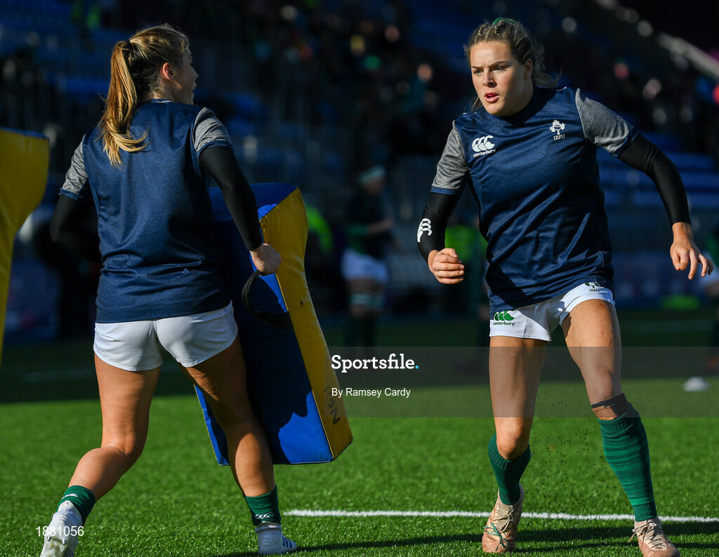 9 February 2020; Beibhinn Parsons, right, and Eimear Considine of Ireland warm-up prior to the Women's Six Nations Rugby Championship match between Ireland and Wales at Energia Park in Dublin. Photo by Ramsey Cardy/Sportsfile