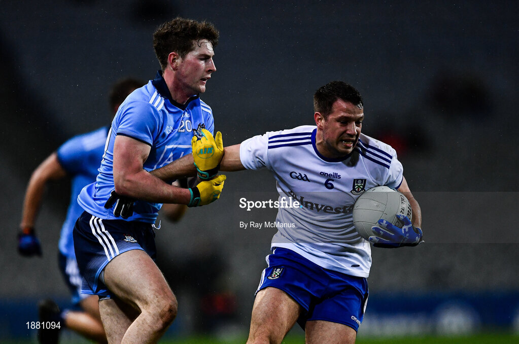 8 February 2020; Ryan Wylie of Monaghan is tackled by Liam Flatman of Dublin during the Allianz Football League Division 1 Round 3 match between Dublin and Monaghan at Croke Park in Dublin. Photo by Ray McManus/Sportsfile