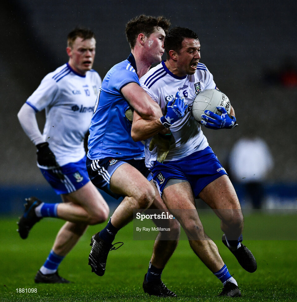 8 February 2020; Ryan Wylie of Monaghan is tackled by Liam Flatman of Dublin during the Allianz Football League Division 1 Round 3 match between Dublin and Monaghan at Croke Park in Dublin. Photo by Ray McManus/Sportsfile