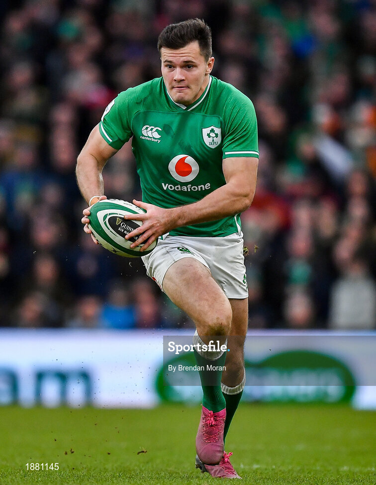 8 February 2020; Jacob Stockdale of Ireland during the Guinness Six Nations Rugby Championship match between Ireland and Wales at Aviva Stadium in Dublin. Photo by Brendan Moran/Sportsfile