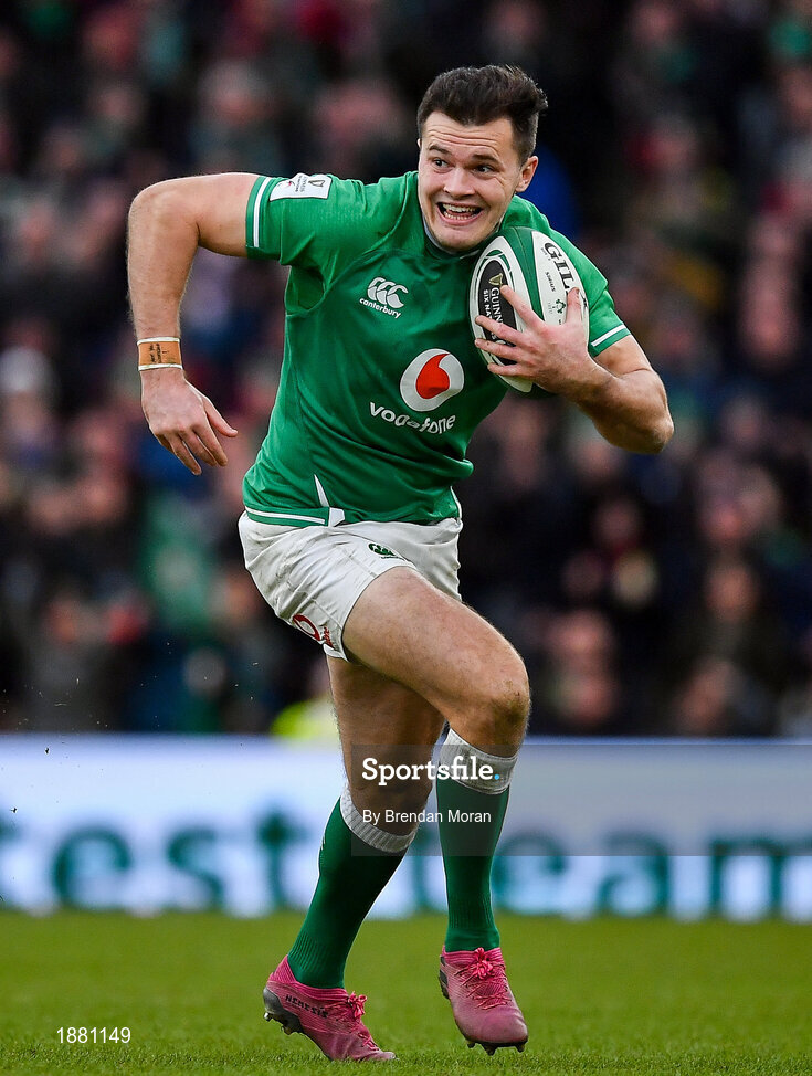 8 February 2020; Jacob Stockdale of Ireland during the Guinness Six Nations Rugby Championship match between Ireland and Wales at Aviva Stadium in Dublin. Photo by Brendan Moran/Sportsfile