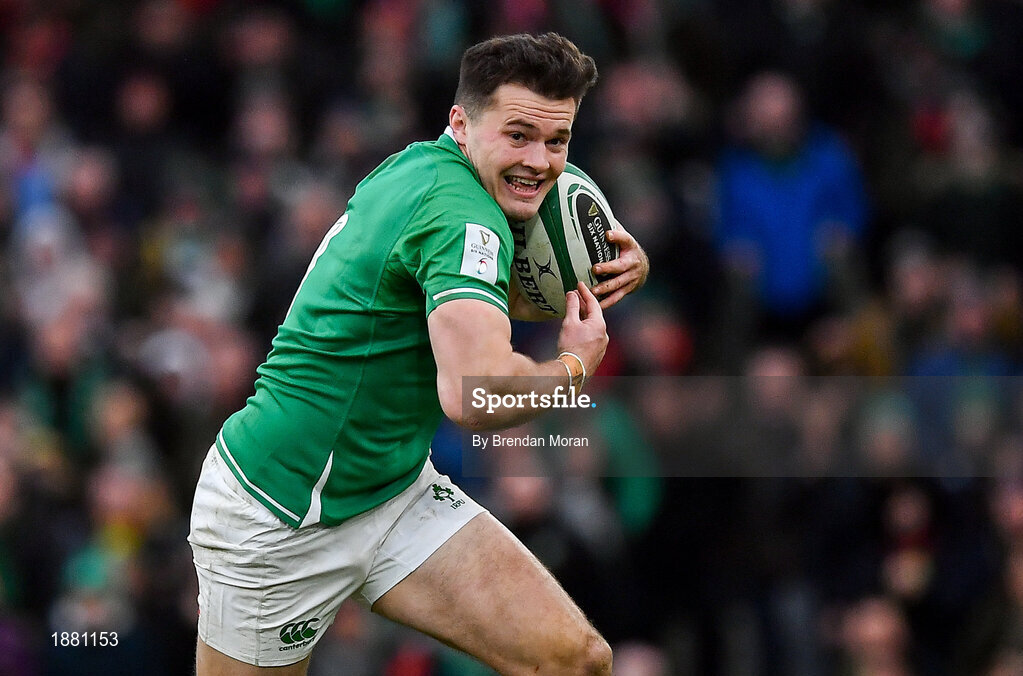8 February 2020; Jacob Stockdale of Ireland during the Guinness Six Nations Rugby Championship match between Ireland and Wales at Aviva Stadium in Dublin. Photo by Brendan Moran/Sportsfile