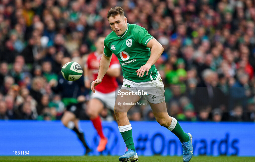 8 February 2020; Jordan Larmour of Ireland during the Guinness Six Nations Rugby Championship match between Ireland and Wales at Aviva Stadium in Dublin. Photo by Brendan Moran/Sportsfile