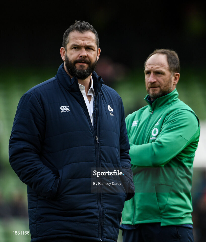 8 February 2020; Ireland head coach Andy Farrell, left, and Assistant coach Mike Catt ahead of the Guinness Six Nations Rugby Championship match between Ireland and Wales at the Aviva Stadium in Dublin. Photo by Ramsey Cardy/Sportsfile