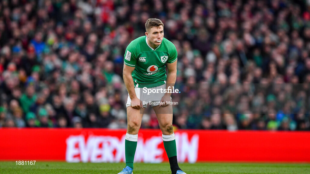 8 February 2020; Jordan Larmour of Ireland during the Guinness Six Nations Rugby Championship match between Ireland and Wales at Aviva Stadium in Dublin. Photo by Brendan Moran/Sportsfile