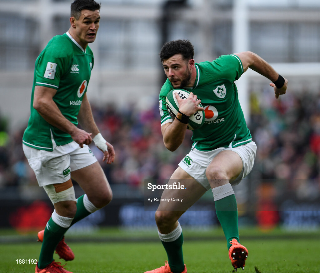 8 February 2020; Robbie Henshaw, right, and Jonathan Sexton of Ireland during the Guinness Six Nations Rugby Championship match between Ireland and Wales at the Aviva Stadium in Dublin. Photo by Ramsey Cardy/Sportsfile