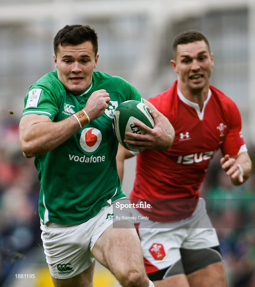 8 February 2020; Jacob Stockdale of Ireland and George North of Wales during the Guinness Six Nations Rugby Championship match between Ireland and Wales at the Aviva Stadium in Dublin. Photo by Ramsey Cardy/Sportsfile