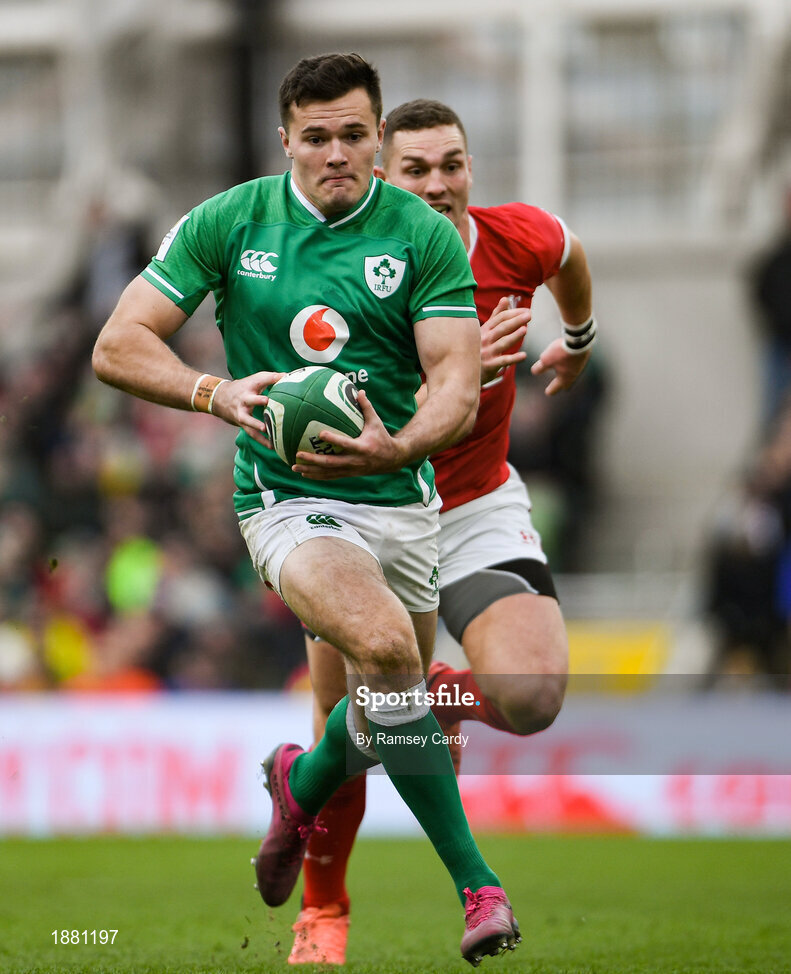 8 February 2020; Jacob Stockdale of Ireland and George North of Wales during the Guinness Six Nations Rugby Championship match between Ireland and Wales at the Aviva Stadium in Dublin. Photo by Ramsey Cardy/Sportsfile
