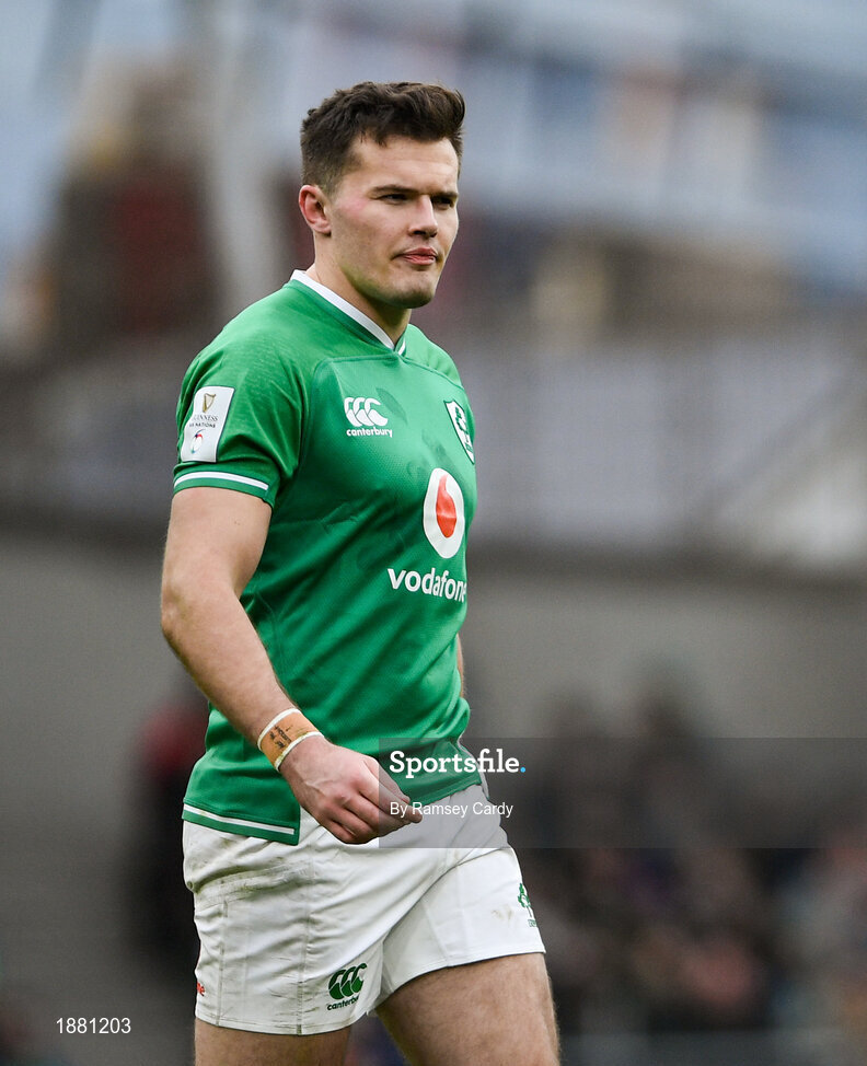 8 February 2020; Jacob Stockdale of Ireland during the Guinness Six Nations Rugby Championship match between Ireland and Wales at the Aviva Stadium in Dublin. Photo by Ramsey Cardy/Sportsfile