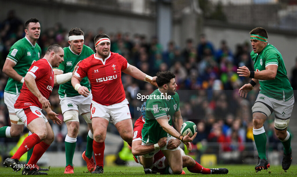 8 February 2020; Robbie Henshaw passes to Ireland team-mate CJ Stander during the Guinness Six Nations Rugby Championship match between Ireland and Wales at the Aviva Stadium in Dublin. Photo by Ramsey Cardy/Sportsfile
