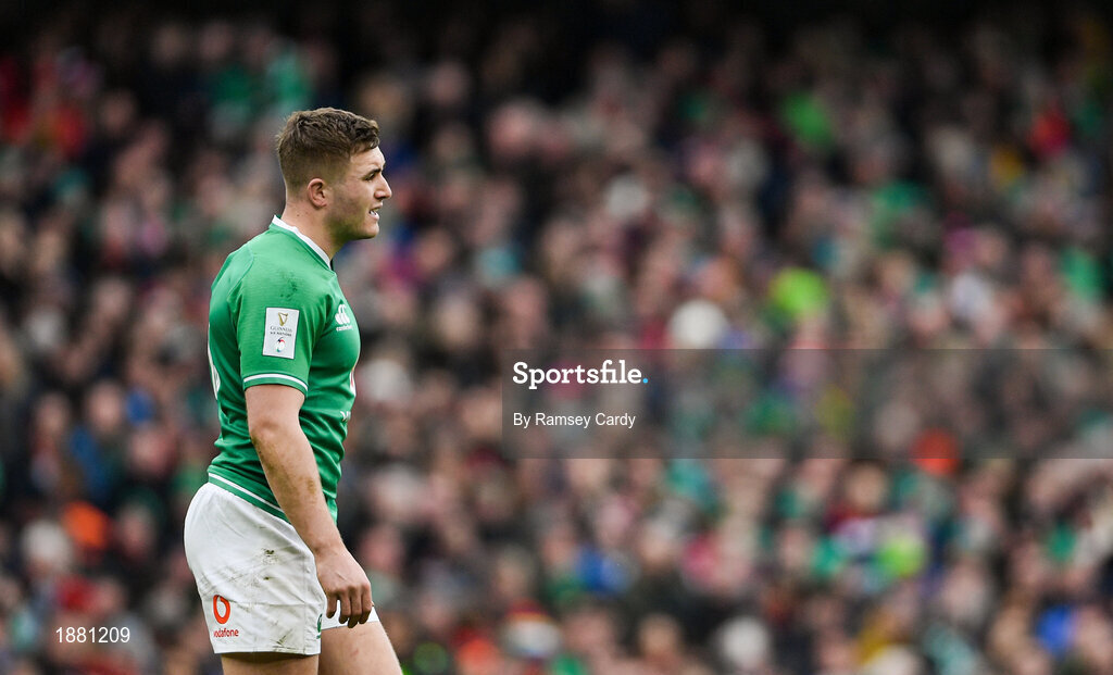 8 February 2020; Jordan Larmour of Ireland during the Guinness Six Nations Rugby Championship match between Ireland and Wales at the Aviva Stadium in Dublin. Photo by Ramsey Cardy/Sportsfile