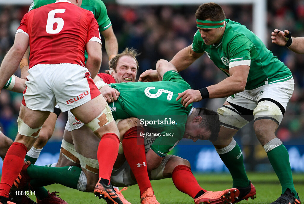 8 February 2020; James Ryan of Ireland is tackled by Alun Wyn Jones of Wales during the Guinness Six Nations Rugby Championship match between Ireland and Wales at the Aviva Stadium in Dublin. Photo by Ramsey Cardy/Sportsfile