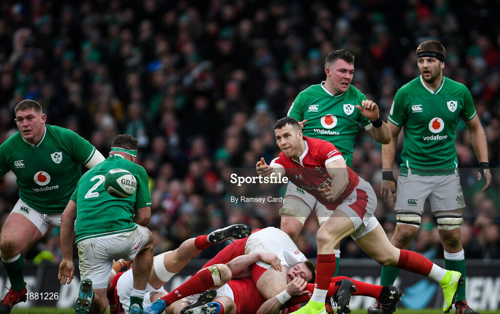 8 February 2020; Gareth Davies of Wales during the Guinness Six Nations Rugby Championship match between Ireland and Wales at the Aviva Stadium in Dublin. Photo by Ramsey Cardy/Sportsfile
