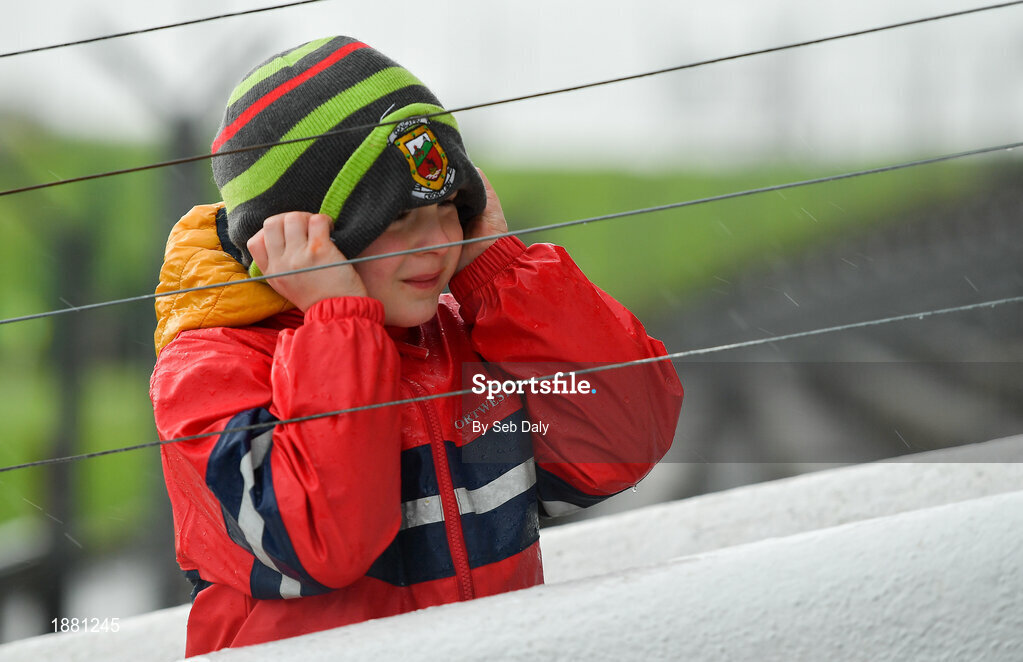 9 February 2020; Daniel Buckley, aged 6, from Ballyhaunis, Co. Mayo, prior to the Allianz Football League Division 1 Round 3 match between Meath and Mayo at Páirc Tailteann in Navan, Meath. Photo by Seb Daly/Sportsfile