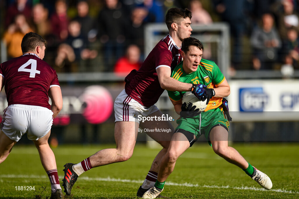 9 February 2020; Eoin McHugh of Donegal in action against Gary O'Donnell of Galway during the Allianz Football League Division 1 Round 3 match between Donegal and Galway at O'Donnell Park in Letterkenny, Donegal. Photo by Oliver McVeigh/Sportsfile