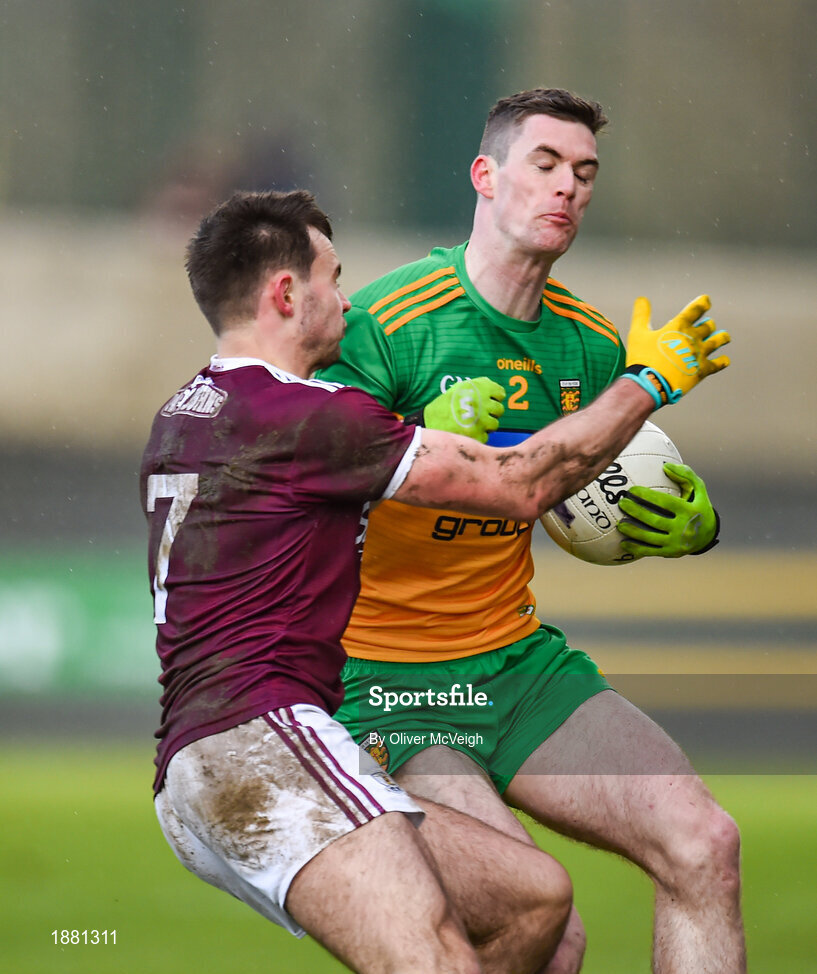 9 February 2020; Caolan Ward of Donegal in action against Cillian McDaid of Galway during the Allianz Football League Division 1 Round 3 match between Donegal and Galway at O'Donnell Park in Letterkenny, Donegal. Photo by Oliver McVeigh/Sportsfile