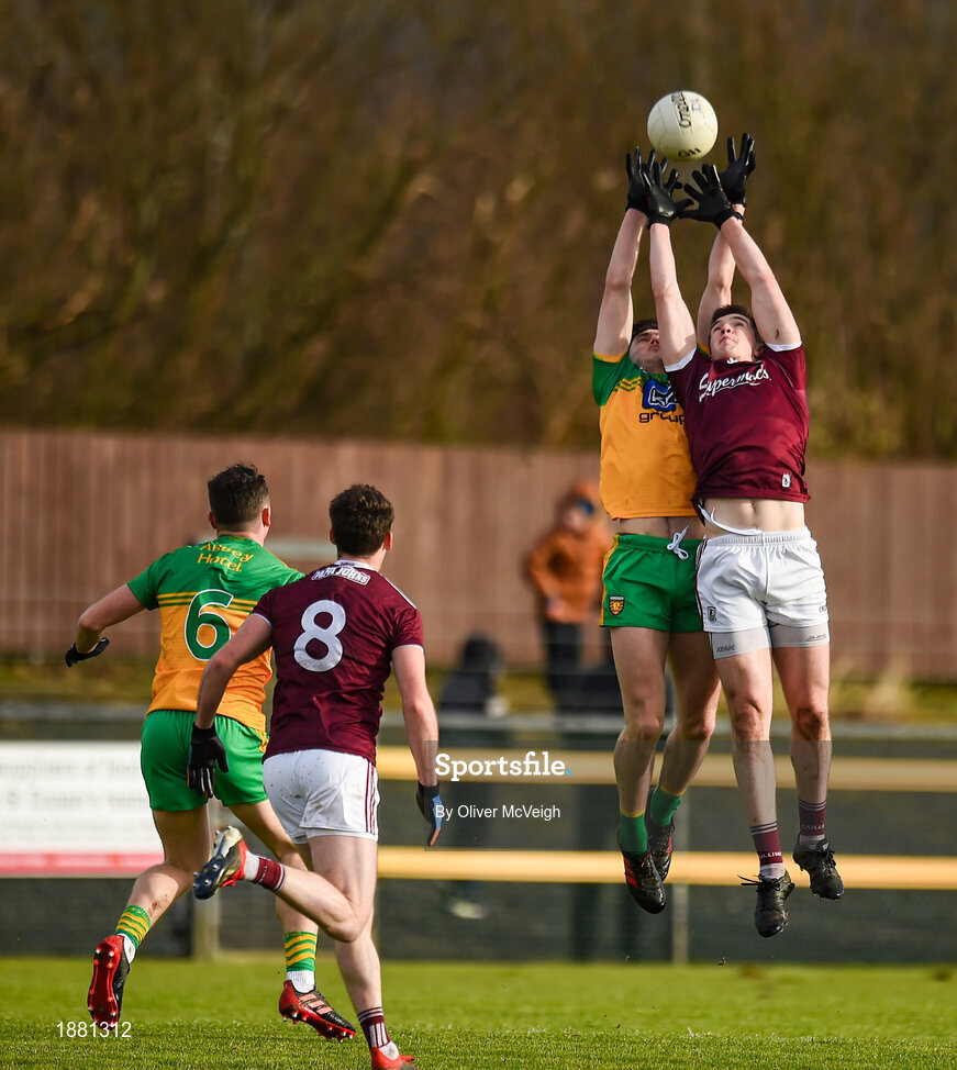 9 February 2020; Michael Langan of Donegal in action against Cein D'Arcy of Galway during the Allianz Football League Division 1 Round 3 match between Donegal and Galway at O'Donnell Park in Letterkenny, Donegal. Photo by Oliver McVeigh/Sportsfile