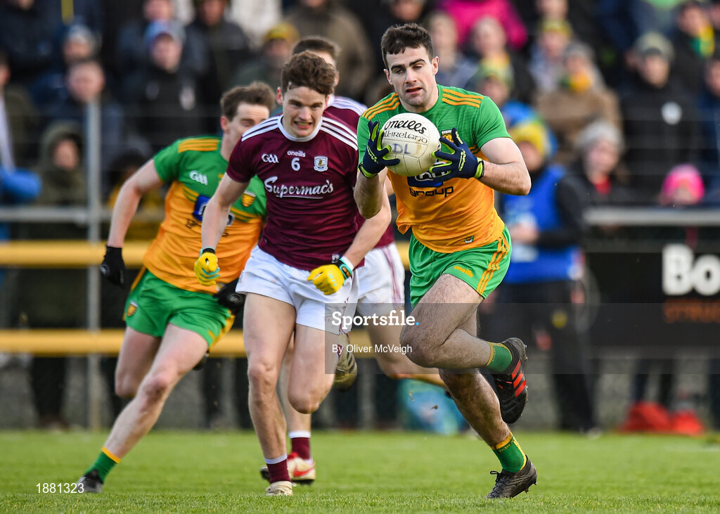 9 February 2020; Caolan McGonagle of Donegal in action against John Daly of Galway during the Allianz Football League Division 1 Round 3 match between Donegal and Galway at O'Donnell Park in Letterkenny, Donegal. Photo by Oliver McVeigh/Sportsfile